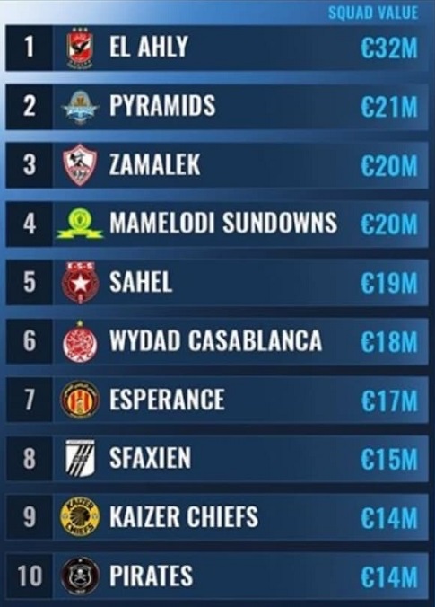 ترتيب الاندية الافريقية حسب القيمة التسويقية